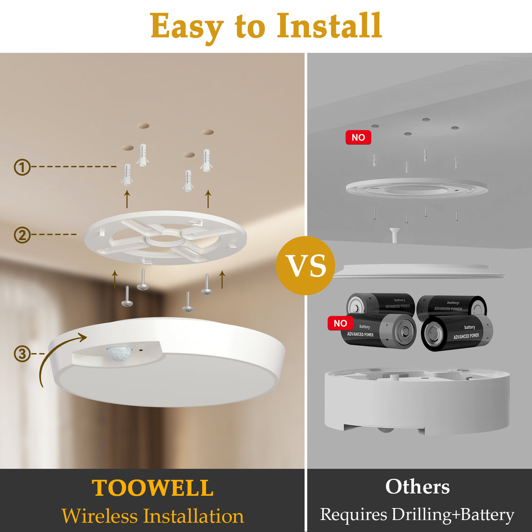 - 【Reliable After-sales Service】: TOOWELL provides timely service, if you encounter any issues or have any questions about this battery ceiling light motion sensor, please feel free to contact us. Your satisfaction is our priority!