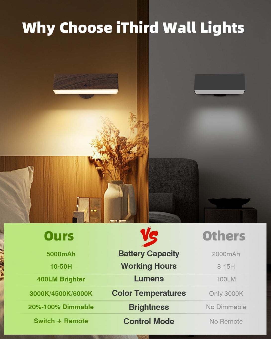 • 🏡 Wide Application: iThird battery-powered wall sconces are great wall light decor, featuring eye-friendly protection and a memory function that saves your previous light settings (brightness & color). set of 2 wooden wall sconce is suitable for bedrooms, living rooms, hallways, cabinets, closets, stairways, TV walls, stairs, corridors, RV, etc. This wall sconce set of two can be installed anywhere you want