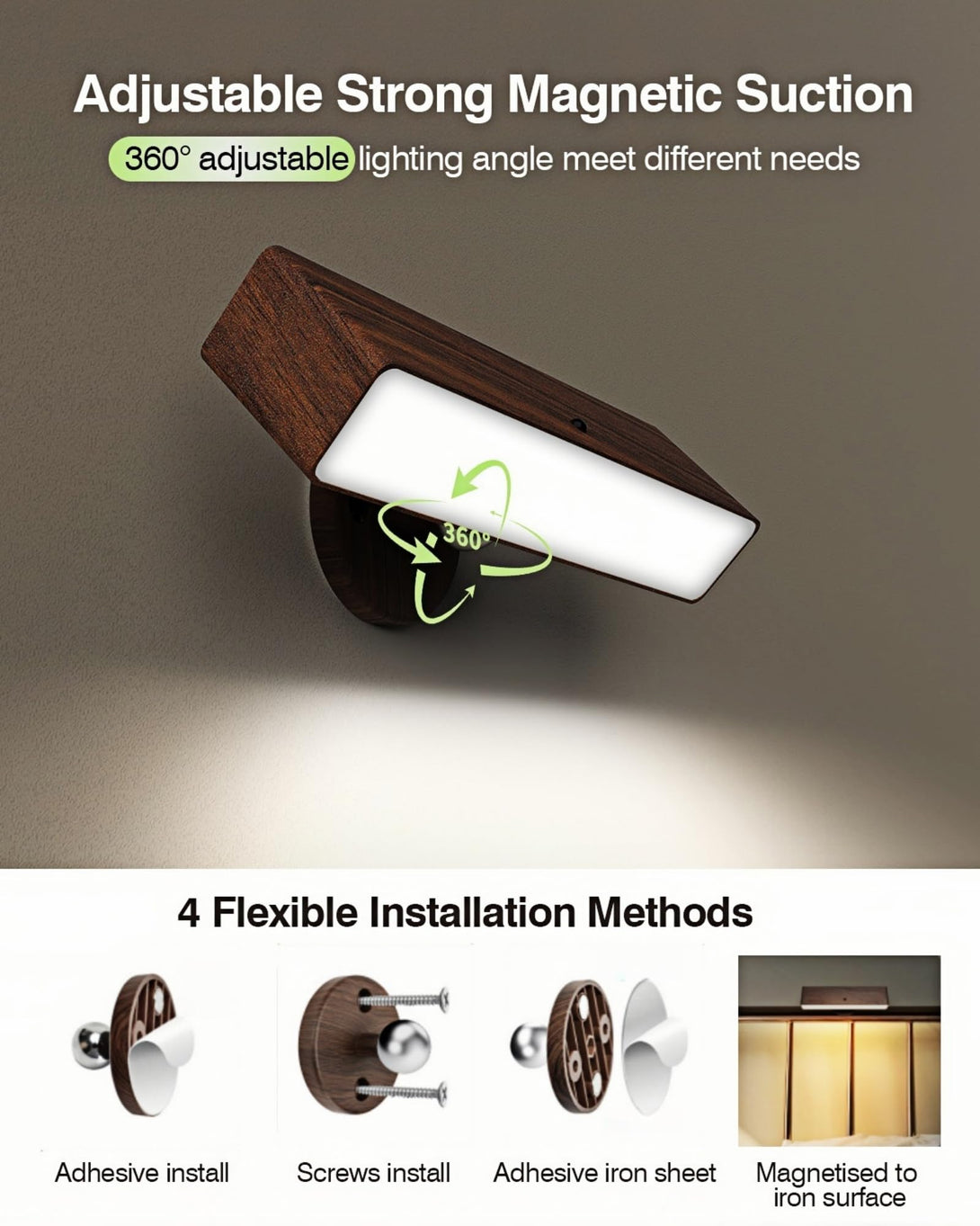 • 🔄 360° Magnetic Rotation & Portable Design: Experience ultimate flexibility with our magnetic wall light! The 360° rotating magnetic ball allows you to adjust the adhesive wall sconce to any angle, ensuring perfect illumination for every corner of your space. Easy to remove from the base as a portable light or charging