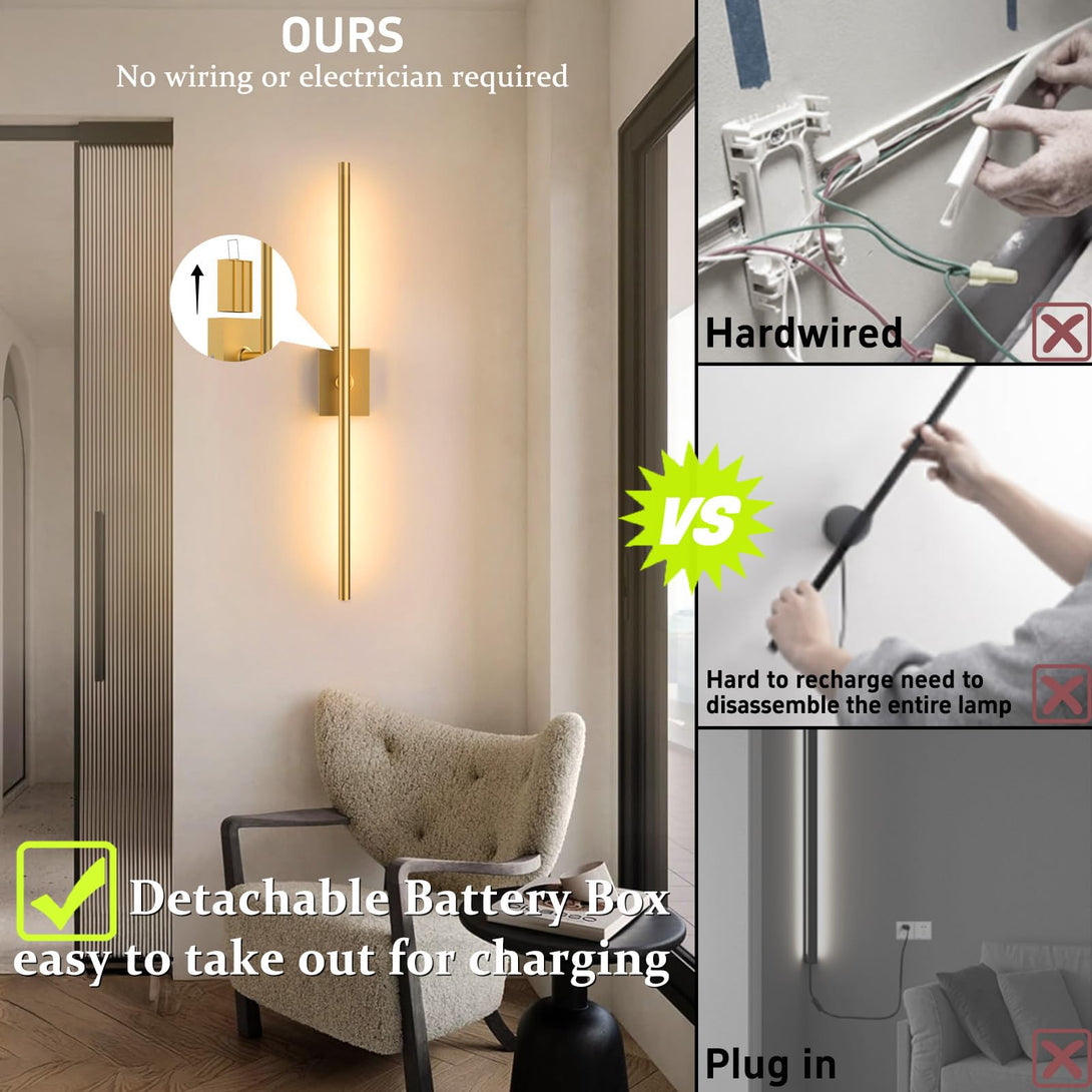 ✔️【Wireless & Hassle-Free Installation】No Wiring Needed, Skip the electrician! These set of 2 battery operated wall sconces install in minutes with included screws, whether you’re a DIY enthusiast or just looking for a quick home upgrade, these sconce lights are the perfect choice