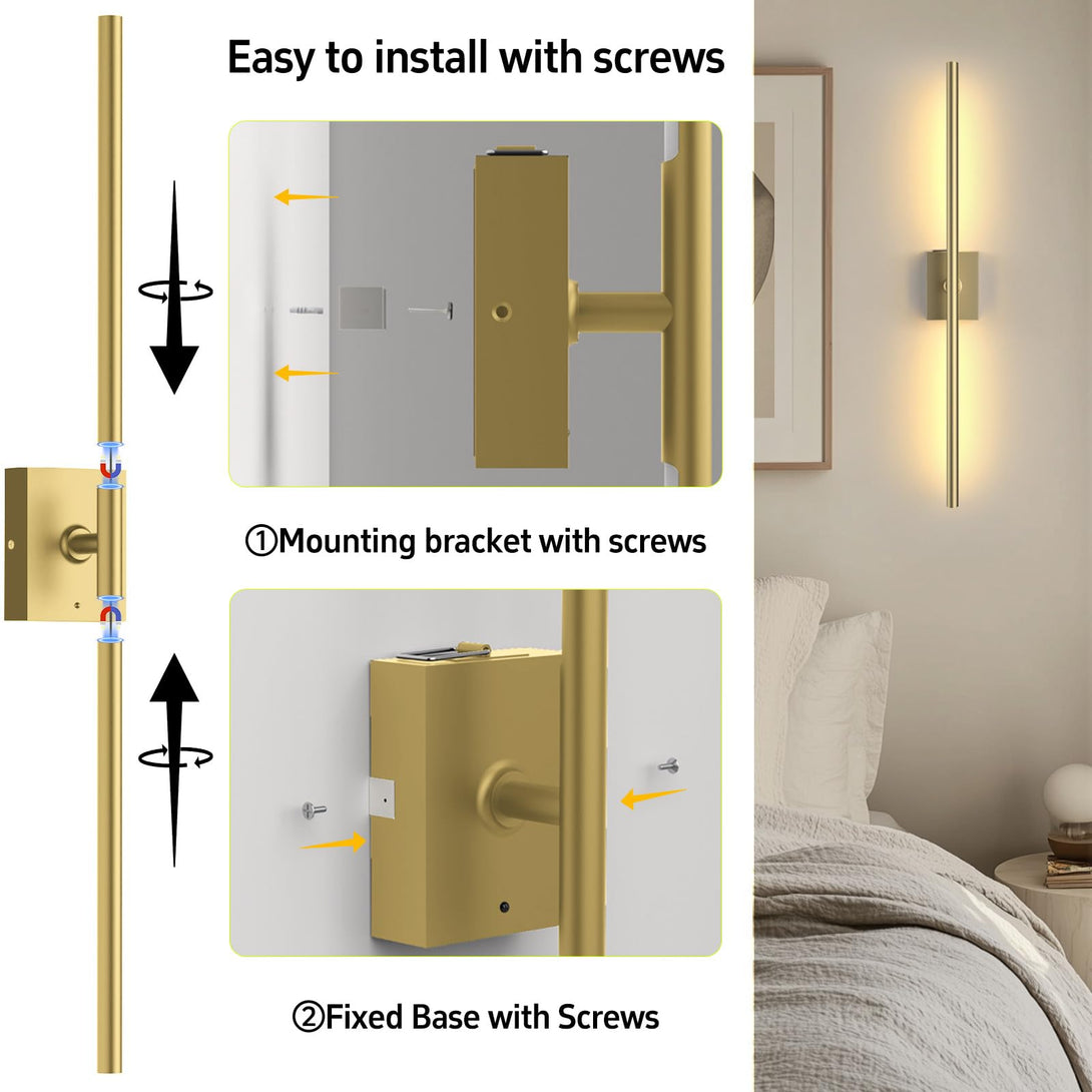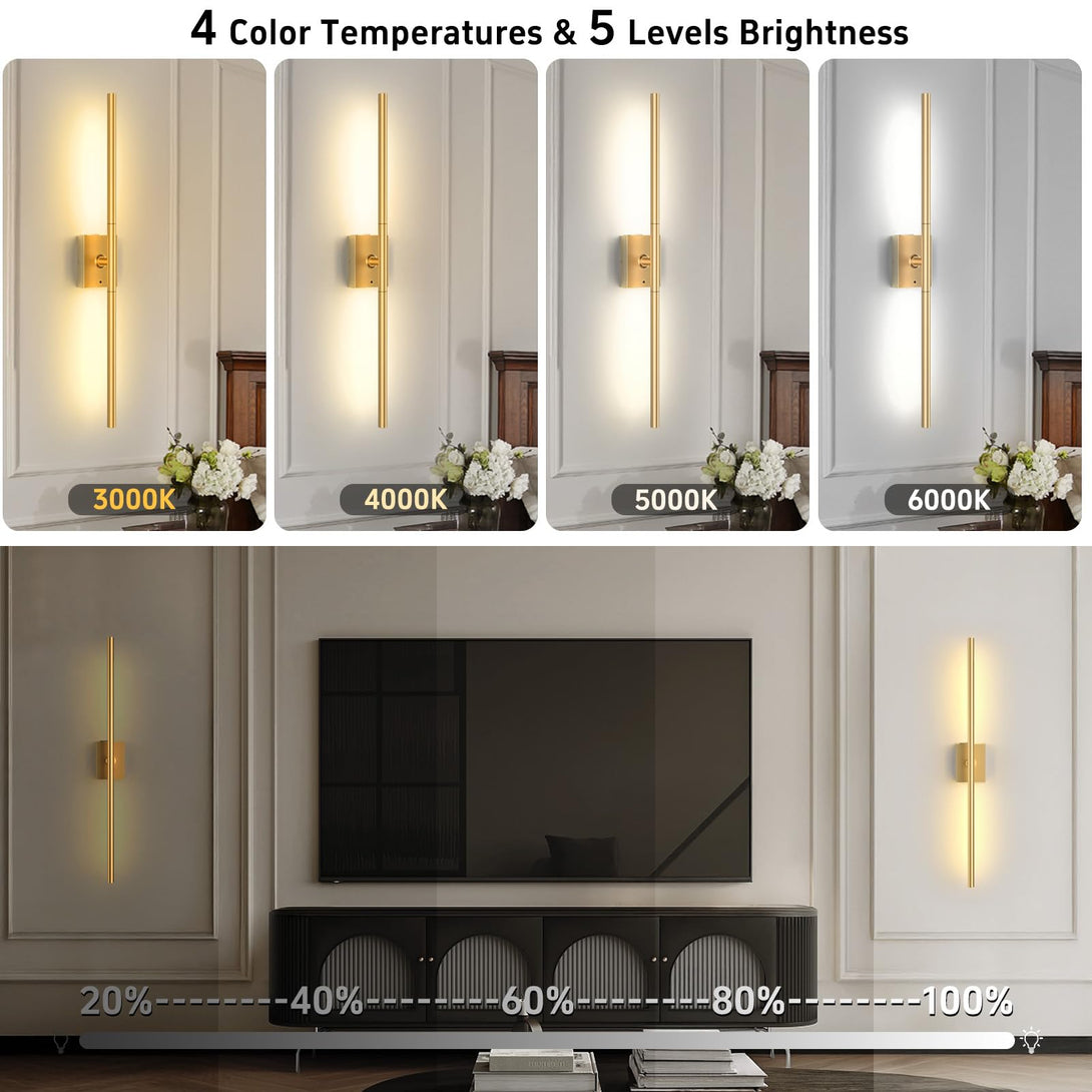 - ✔️【360°Illumination for Every Space】Elevate your home decor with iThird 31.5-inch wall sconces set of two! This gold wall sconce lighting combines 360° adjustable lighting with modern sophistication. Perfect for TV walls, vanity mirrors, bedrooms, hallways, bathrooms, and home offices